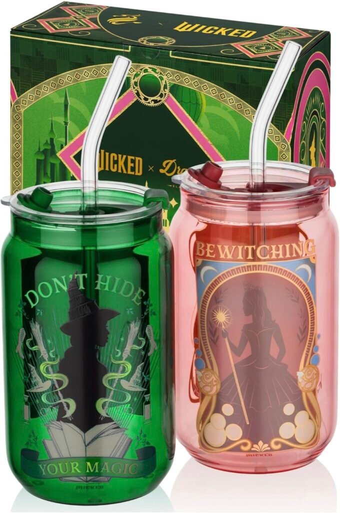 Dragon Glassware x Wicked 16 oz Drinking Glasses Set of 2 – Glass Cups with Lids and Straws – Iced Coffee Cups with Lids – Reusable Glass Tumbler with Straw and Lid – Enchanted $32.99